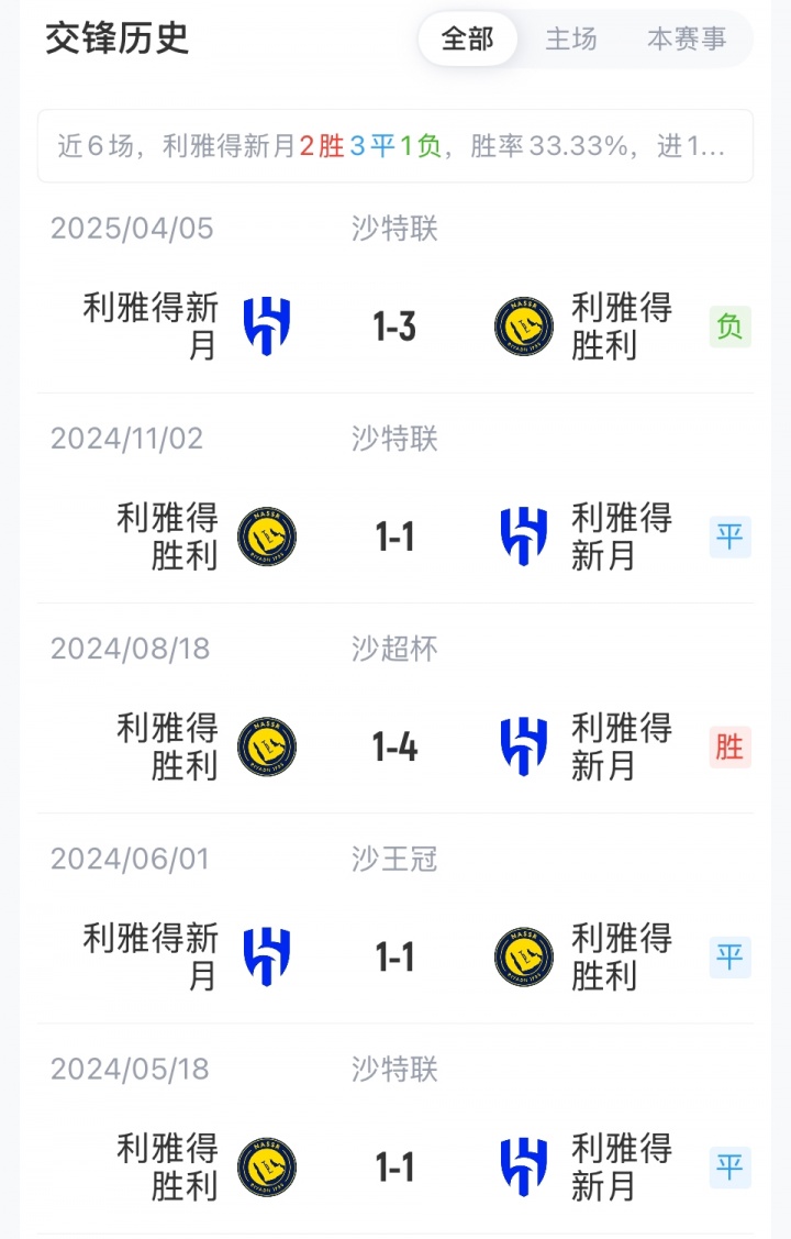 利雅得胜利首发:1-阿奇迪、12-纳瓦夫、26-伊尼戈·马丁内斯、3-西马坎、23-叶海亚、11-布罗佐维奇、17-哈巴利、20-安吉洛、21-科曼、79-菲利克斯、7-C罗